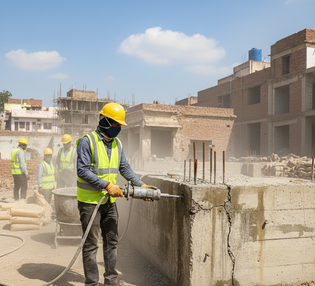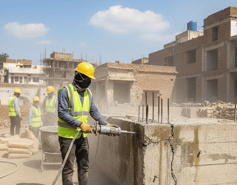Injection grouting is an advanced repair technique used to seal active leaks, fill cracks, and strengthen weakened concrete structures. This method involves injecting specialized chemical or cement-based grouts into cracks, voids, and joints under controlled pressure to create a watertight seal and restore structural integrity. It is highly effective for stopping ongoing water seepage without major structural dismantling.