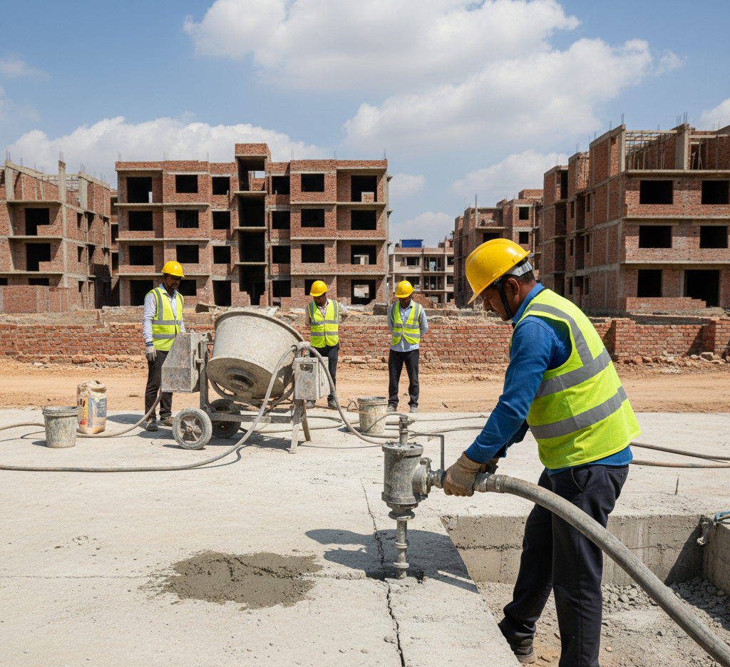 Pressure grouting is a specialized technique used to strengthen weak or damaged concrete structures by injecting cementitious or chemical grout under controlled pressure. This process fills voids, cracks, and honeycombed areas, improves load-bearing capacity, and enhances overall structural stability. It is widely used to restore compromised foundations and prevent further deterioration.